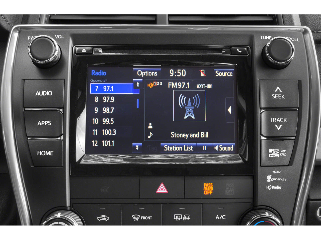 - Radio: Entune Audio -inc: paquete multimedia Entune, pantalla táctil de 6,1 pulgadas, reproductor de CD AM/FM, capacidad de reproducción de MP3/WMA, 6 altavoces, conector auxiliar de audio, puerto USB 2.0 con conectividad y control para iPod, función de teléfono manos libres, acceso a la agenda telefónica, reconocimiento de voz avanzado y transmisión de música a través de la tecnología inalámbrica Bluetooth®.