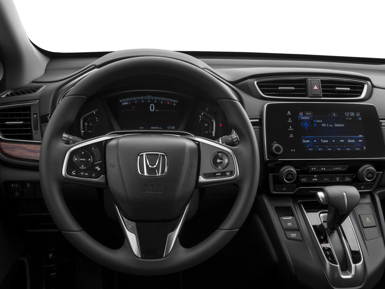 - Radio: Sistema de audio AM/FM con 6 altavoces, incluyendo: 180 vatios, pantalla de 7 pulgadas con pantalla táctil electrostática WVGA (800 x 480) de alta resolución, ajustes personalizables, transmisión de audio Bluetooth® y HandsFreeLink, compatibilidad con Pandora, sistema de datos de radio (RDS), control de volumen sensible a la velocidad (SVC), interfaces de audio USB/pantalla con puerto de carga de 1,5 A en la consola central, tomas de corriente de 12 voltios (delantera y consola central), HondaLink, Apple CarPlay/Android Auto, SiriusXM, función de mensajes de texto SMS y puertos de carga de 2,5 A en la segunda fila.