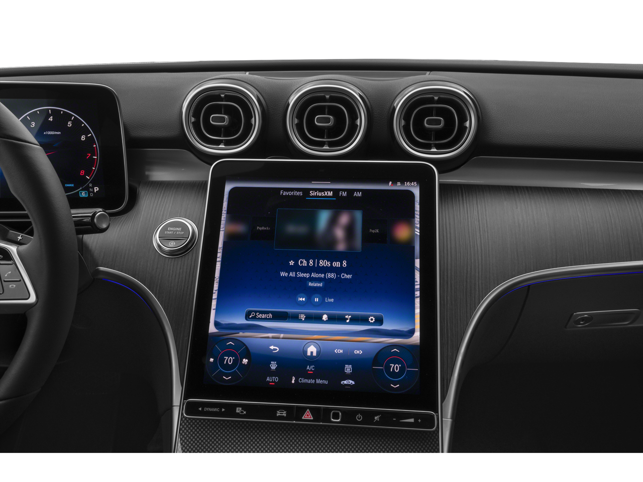 - Radio: sistema multimedia MBUX de tercera generación, que incluye: sistema de sonido envolvente Burmester, 3 puertos USB-C y tecnología Bluetooth® (para uso de teléfono manos libres/transmisión de audio).